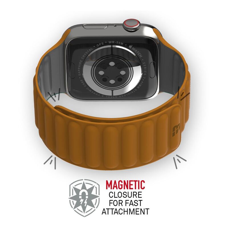 This universal strap for all Apple Watches uses embedded loop magnetic pads to easily adjust and securely clasp around your wrist. Easily adjusts to the exact length and fit for your arm with a strong magnetic connection. Please note: Take care when undressing that your watch strap does not get hung up inside and unexpectedly come off.