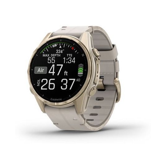 For serious athletes and adventurers who want to push beyond their limits, this premium multisport GPS smartwatch is built to perform — with advanced strength training features, dive capability, an internal speaker and mic for voice features, a built-in LED flashlight and compact styling for smaller wrists.