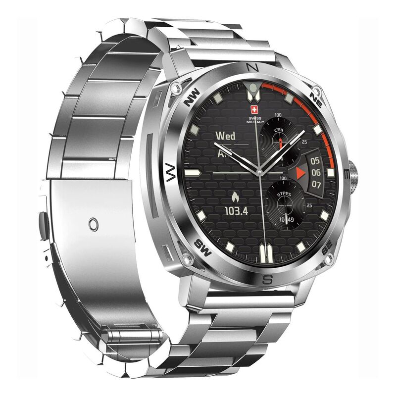 Swiss Military DOM4 Smartwatch - Silver With Stainless Steel Strap
