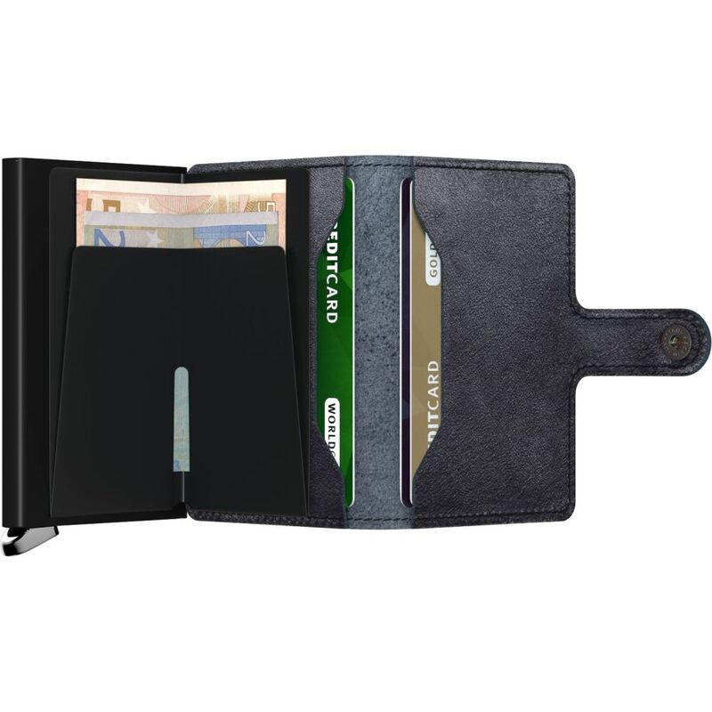 Based on the award winning SECRID Cardprotector, the Miniwallet is both a compact and secure wallet. In addition to the cards in the Cardprotector, the top quality leather interior offers space for a few cards, paper money, receipts, and business cards and some coins.