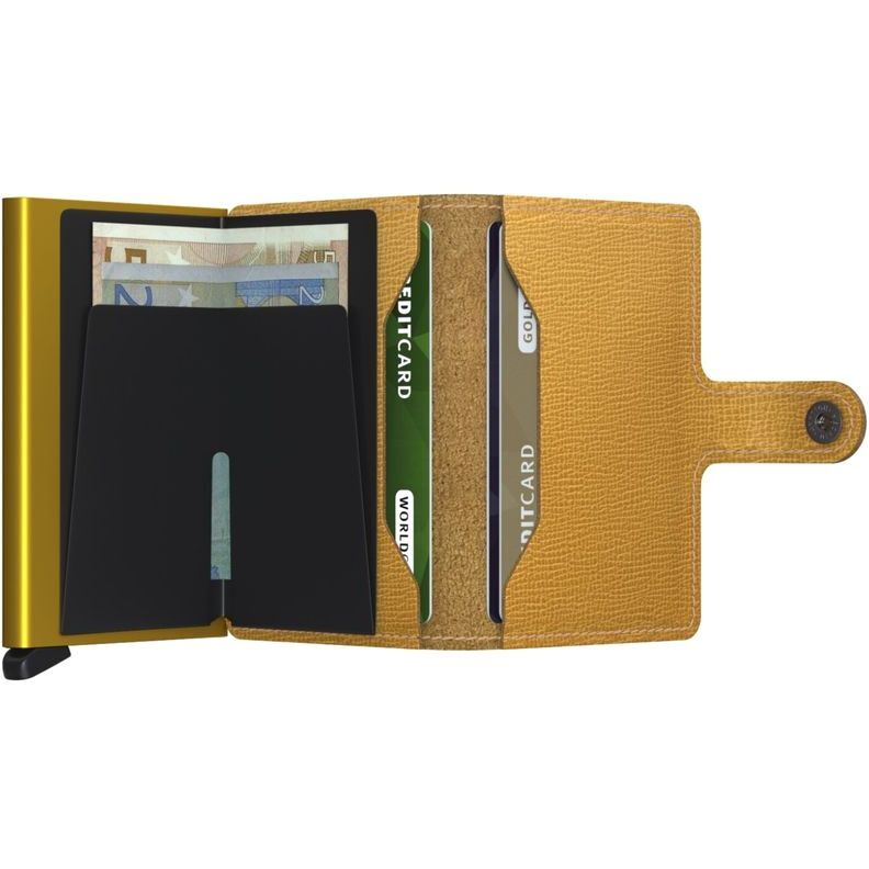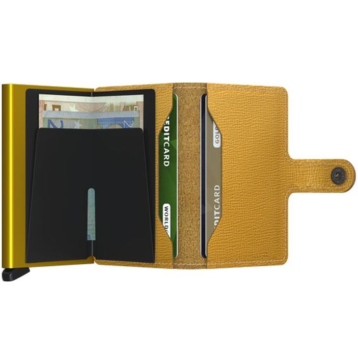 Based on the award winning SECRID Cardprotector, the Miniwallet is both a compact and secure wallet. In addition to the cards in the Cardprotector, the top quality leather interior offers space for a few cards, paper money, receipts, and business cards and some coins.