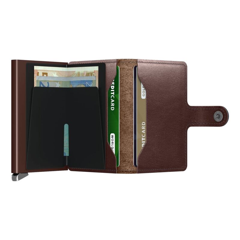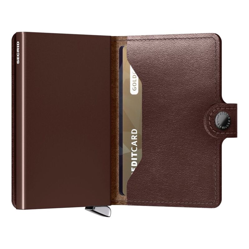 Based on the award winning SECRID Cardprotector, the Miniwallet is both a compact and secure wallet. In addition to the cards in the Cardprotector, the top quality leather interior offers space for a few cards, paper money, receipts, and business cards and some coins.