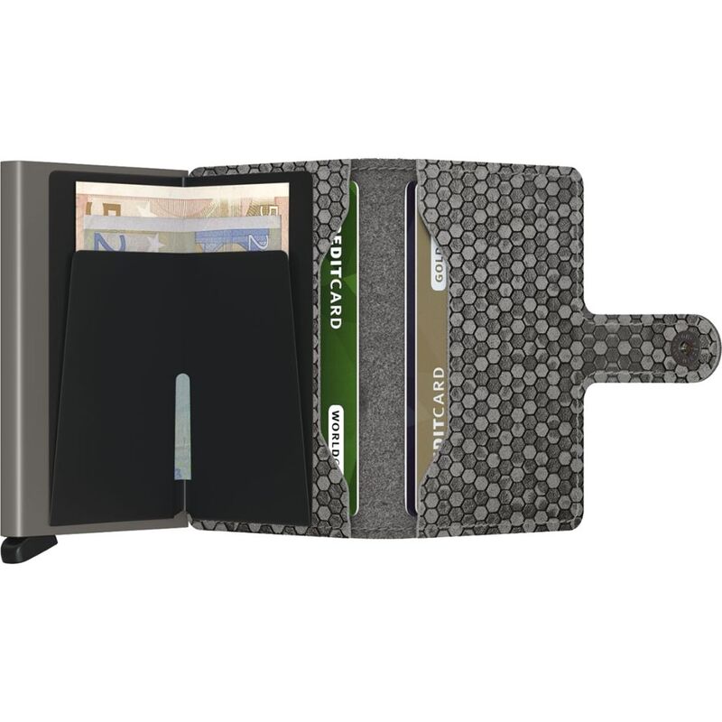 Based on the award winning SECRID Cardprotector, the Miniwallet is both a compact and secure wallet. In addition to the cards in the Cardprotector, the top quality leather interior offers space for a few cards, paper money, receipts, and business cards and some coins.
