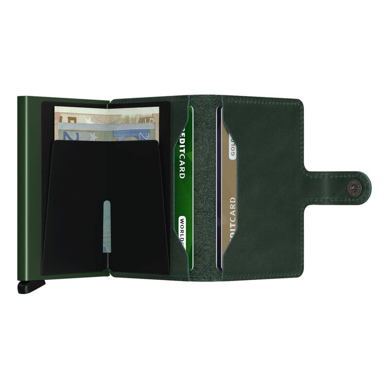 Based on the award winning SECRID Cardprotector, the Miniwallet is both a compact and secure wallet. In addition to the cards in the Cardprotector, the top quality leather interior offers space for a few cards, paper money, receipts, and business cards and some coins.