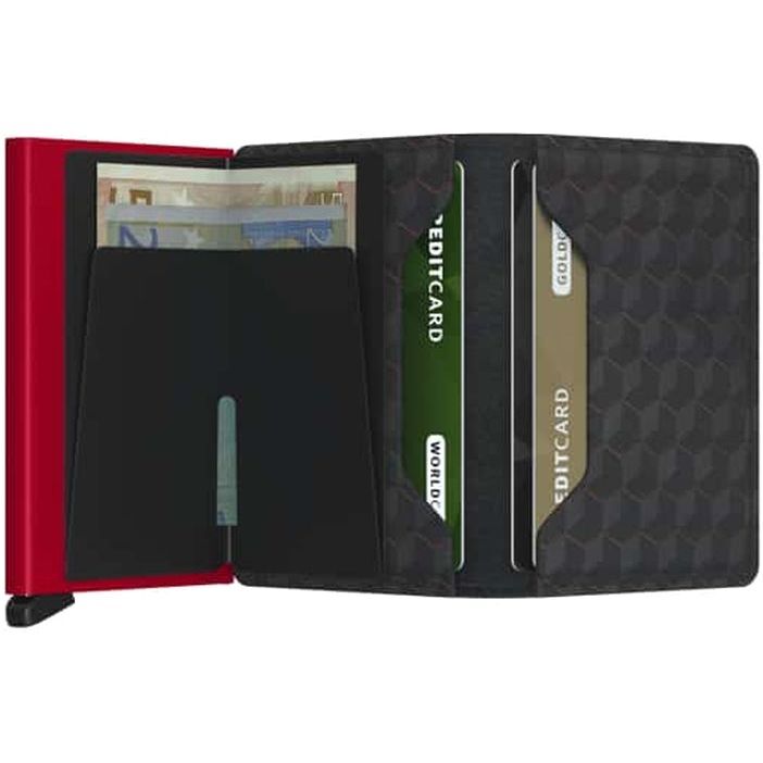 The Slimwallet resembles the Miniwallet, but has no press stud closure and is even slimmer. The Slimwallet fits easily into the breast pocket of a jacket. Its slim profile allows the Slimwallet to fit perfectly into any pocket. The open exterior is designed extra wide to accommodate cards, banknotes and receipts. The Cardprotector mechanism enables you to slide out cards with a simple motion, while the aluminium construction protects your cards from bending, breaking and unwanted wireless communication.