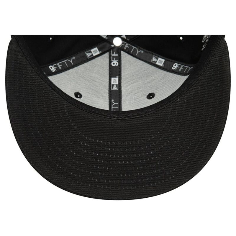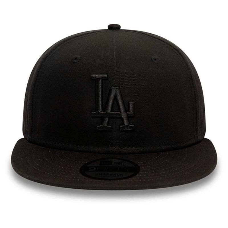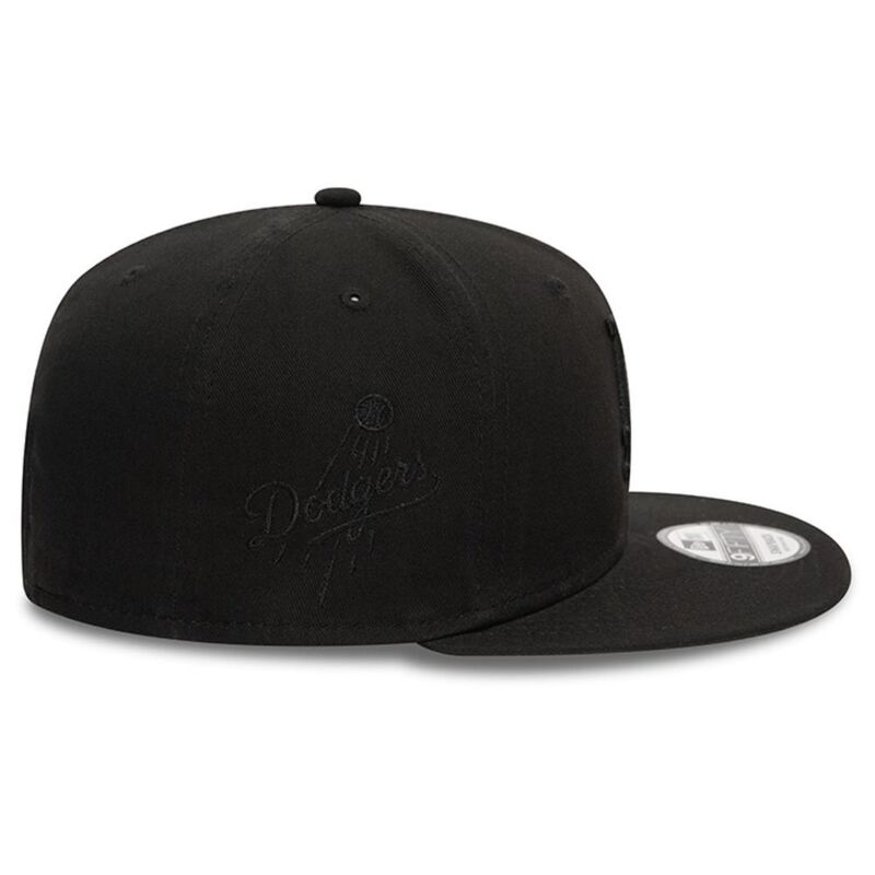 Official New Era Mens Monochrome 'LA Dodgers' 9Fifty Cap. Embroidered 'LA Dodgers' logo on front. Embroidered New Era flag on left. 6 panel structured crown. Flat visor with rear snapback fastener. Cap colour black with black undervisor.