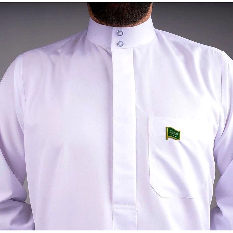 A solid green metal pin magnet badge with gold KSA flag design.~ Special for Saudi National day