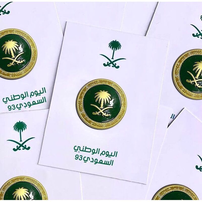 A solid green metal pin magnet badge with gold KSA logo in 30 mm diameter size.~ Special for Saudi National day