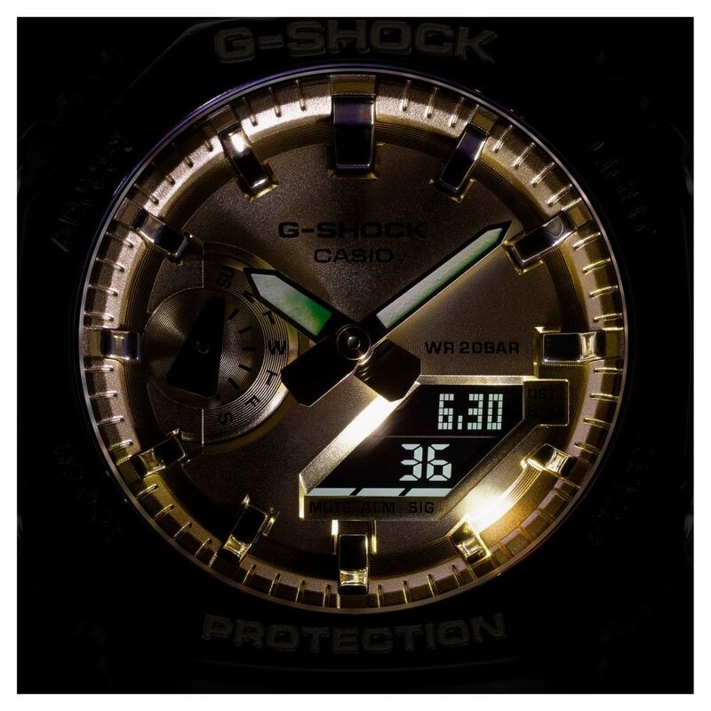 Go metal-clad in cool, sophisticated color with a slim GA-2100 that inherits the design concept of the first-ever G-SHOCK.