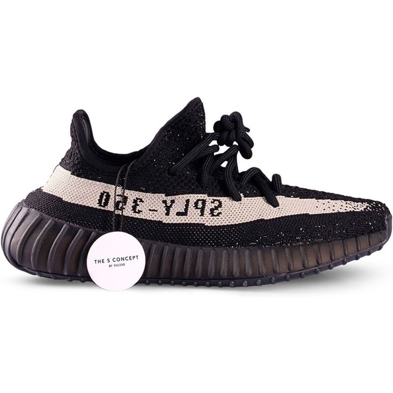 These iconic sneakers boast a sleek, black Primeknit upper, accented by a striking white stripe in a visually compelling contrast. Their aesthetic design promises exceptional comfort and luxury, enhanced with the distinctive SPLY-350 branding and encased in a translucent black midsole, featuring full-length Boost technology.