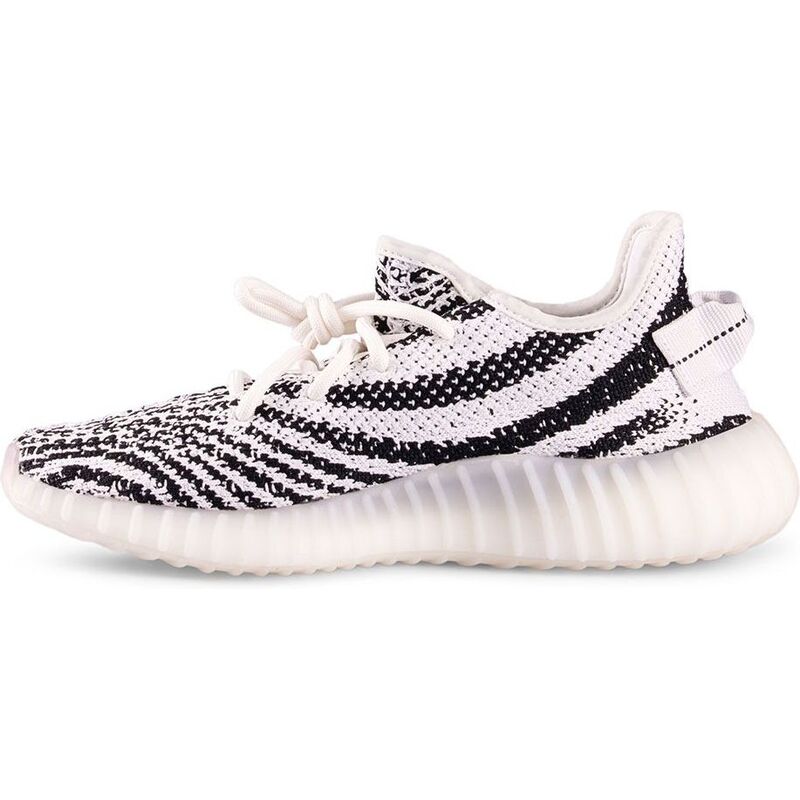 This release of the wildly popular "Zebra" colorway maintains the distinctive color scheme of its predecessor, introducing subtle updates: a brighter white outsole, more vivid red for the "350 - SPLY" text on the Primeknit upper, updated production dates on the inner size tag, and a refined mold for the Boost foam outsole.