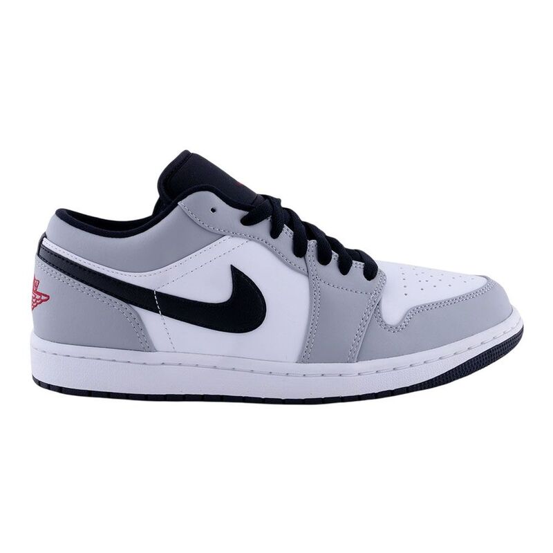 With a white leather upper and grey accents at the heel and toe, complemented by black laces, liners, and Swooshes, this design uniquely stands out. Hits of red, black, and white add a touch of sophistication to the details, while a white midsole and black outsole round out this timeless retro look.