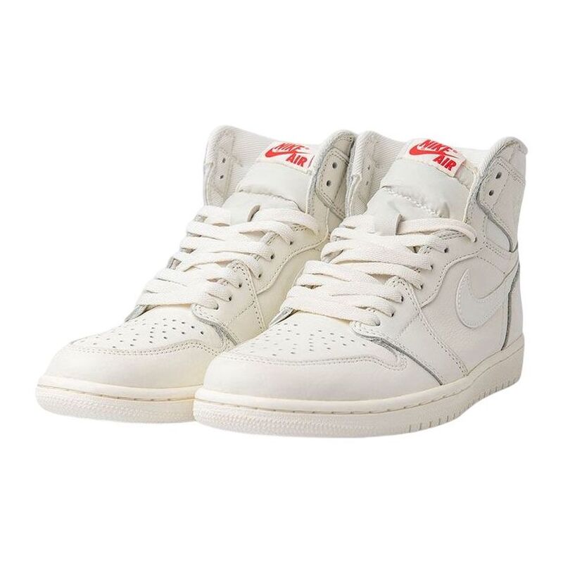 Released as part of the 'Premium Essentials' pack in June 2017، these sneakers feature an Off-White Sail leather upper paired with a tonal Sail rubber outsole. The design is accented by University Red Nike Air branding on the tongue tab, complemented by a perforated toe box, the ‘Air Jordan’ Wings logo, and the Sail Swooshes.