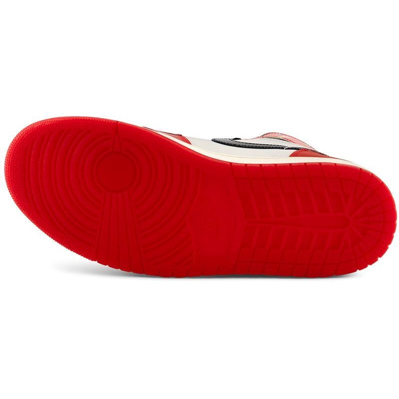 These sneakers reimagine the ‘Chicago’ colorway with a nod to 'Spider-Man: Across the Spider-Verse.’ They feature a white leather upper, black patent leather collar and Swoosh, and scarlet overlays with various textures. With Wings and Nike logos gracing the design, this high-top sits on a rubber cupsole with vintage sidewalls and a crimson semi-translucent outsole.
