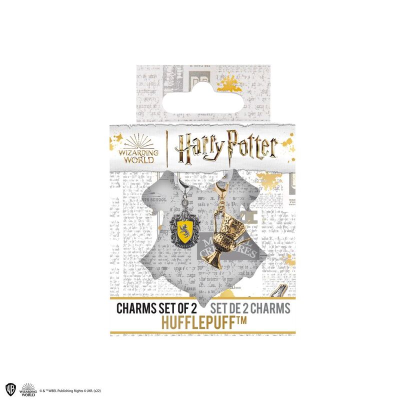 Accessorize your jewellery with these Hufflepuff charms! This set includes a beautiful yellow house crest and a cup of Hufflepuff.