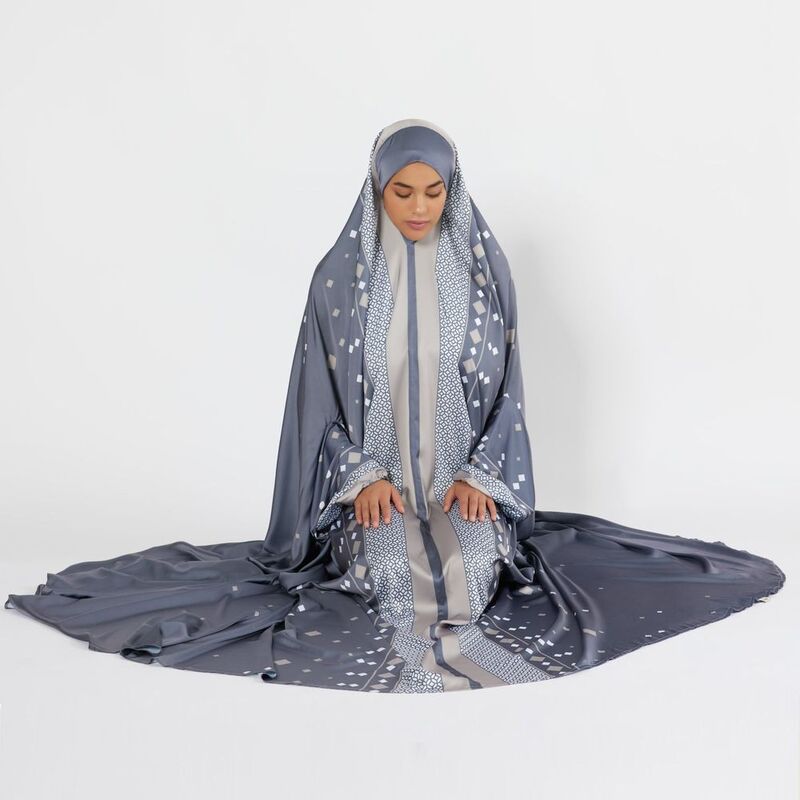 With a deconstructed design from some of our favourite patterns, our satin-feel prayer dresses offer an elegant one-piece outfit option that are comfortable and easy to clean. Complete with a matching drawstring carry pouch, it is great for at-home use as well as travel.