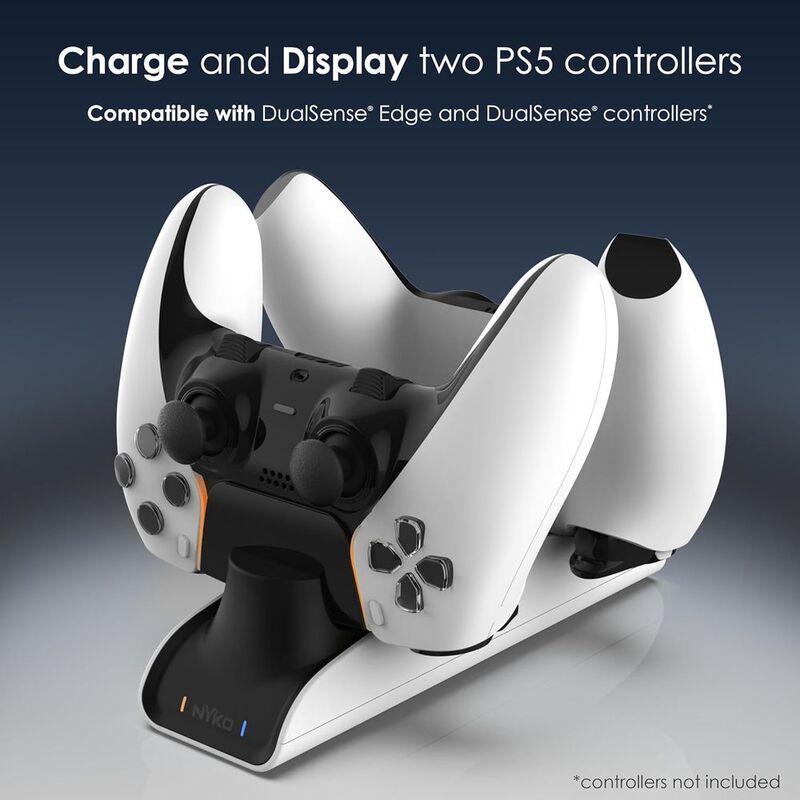 - DUAL PORT RECHARGING DOCK - This dual-port charging dock keeps your PS5 gaming sessions uninterrupted. Charge two controllers simultaneously, ensuring you and your friends are always ready for the next challenge. Universal compatibility extends to both the standard PS5 DualSense and the feature-packed DualSense Edge controller, making it the perfect companion for any PlayStation5 owner.