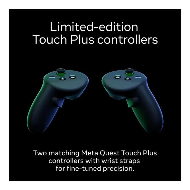 • Limited-edition designGaming’s most powerful duo have come together to make a Meta Quest like no other, featuring a carbon black design with Velocity Green trim.