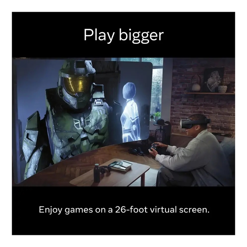 • 26-foot mega screenThe massive virtual screen goes wherever you do. Scale it up, position it anywhere, and transform any space into your personal gaming compound. No Xbox console required.