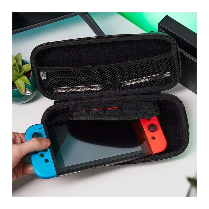 - Includes compartment for up to 10 Nintendo Switch cartridges, and separate compartment for additional accessories.