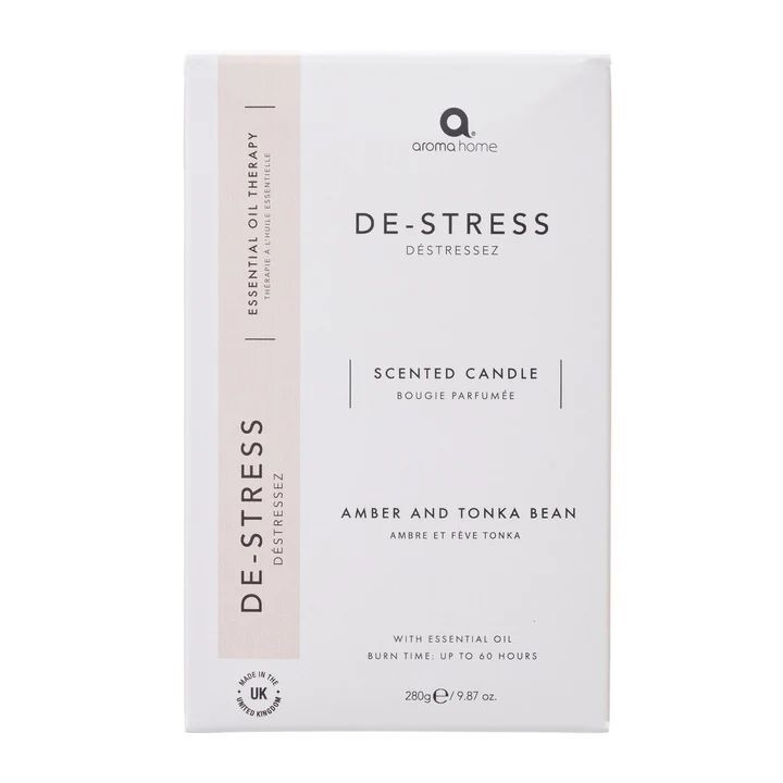 Aroma Home De-Stress Scented Candle - Amber & Tonka Bean Essential Oil