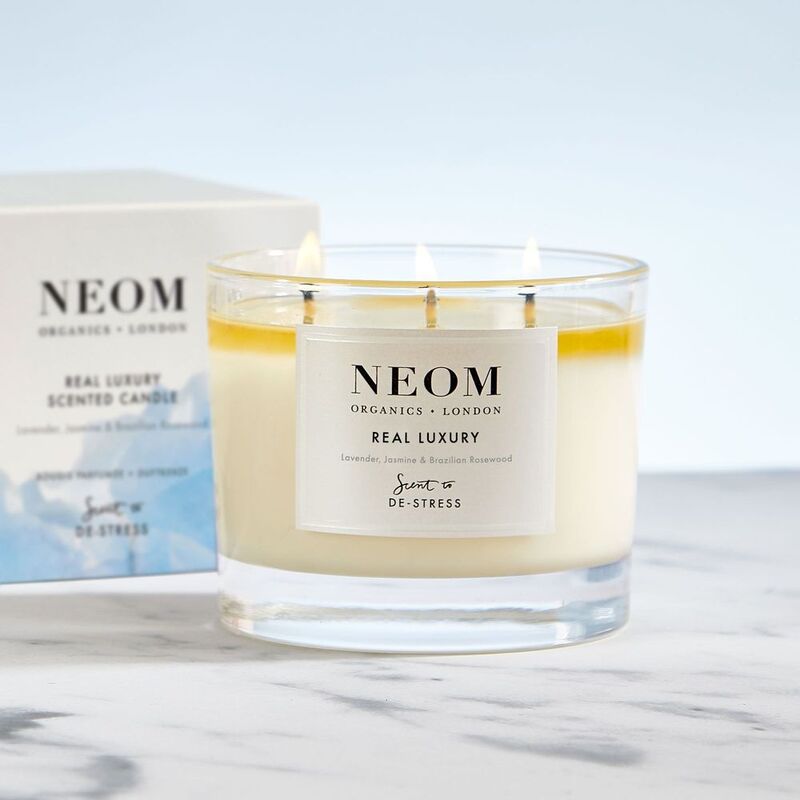 At NEOM taking time to create calm is something we're passionate about which is why we developed our NEOM Scent to De-Stress Range with our special Real Luxuryfragrance. 100% natural fragrance which expertly blends 24 of the purest possible essential oils including lavender, Brazilian rosewood and jasmine with which not only smells wonderful, but can also help you relax and unwind.