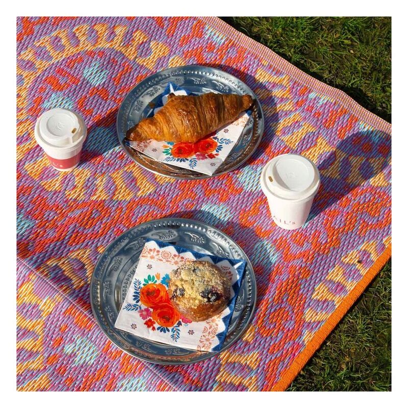 This boho woven outdoor rug is sure to catch the eye of all your friends. Featuring a double-sided design with two colourful geometric patterns to choose from. This plastic rug is fully waterproof making it great for kids, pets and drink spills. Perfect for adding a pop of colour to your garden patio, using for a picnic or indoors for bathrooms, kitchens and utility.