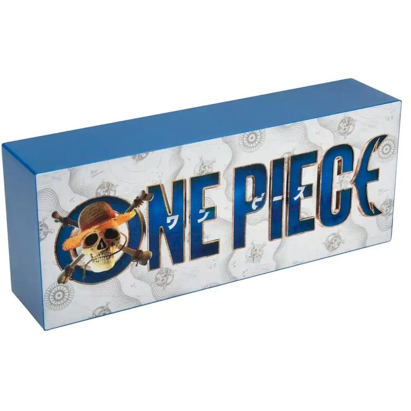 Brighten up your space with this One Piece Logo Light. The 30cm (12") wide light box showcases the iconic logo from Netflix's live-action One Piece series. The light can be wall-mounted (instructions included) or used free-standing. Plus, it includes phase on and light pulsing modes for added effect. Power your light with USB (cable included) or 3x AAA batteries (not included). The One Piece Logo Light will look great placed on your bedside table or perched on a shelf.