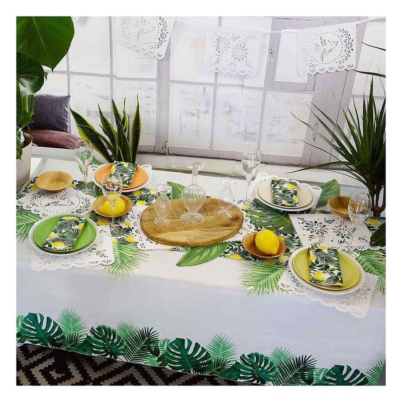 This beautifully crafted tropical table cover is ideal for summer parties, outdoor occasions, BBQ's, and many more! Both product and packaging are plastic free and can be recycled in your home recycling.