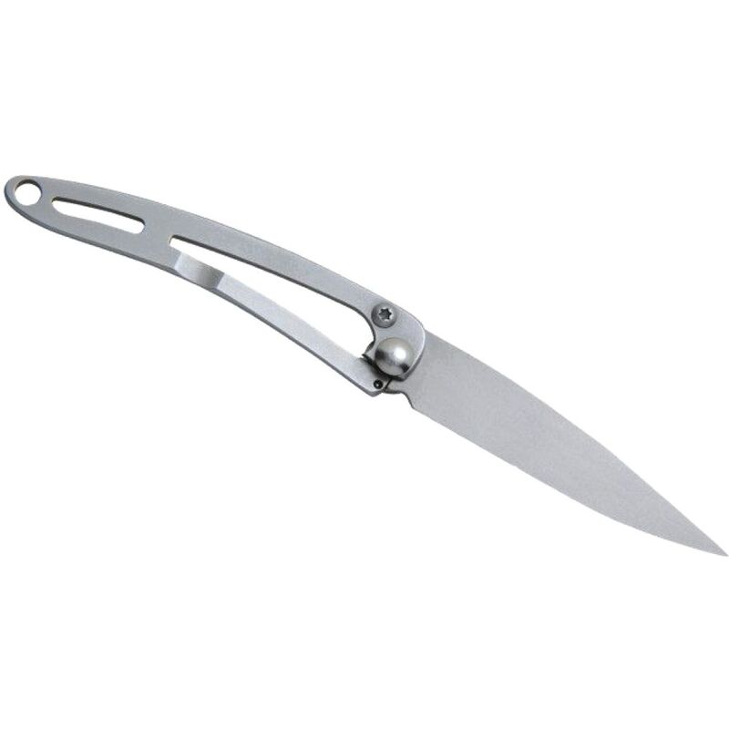 Ultra-light Pocket knife in Z40C13 stainless steel, black titanium finish. Blade with frame lock. Scratch resistant.