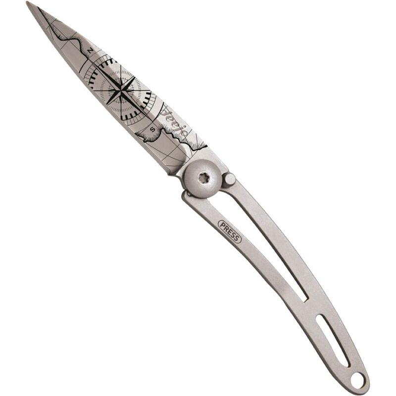 Ultra-light Pocket knife in Z40C13 stainless steel, titanium finish. Blade with frame lock. Scratch resistant.