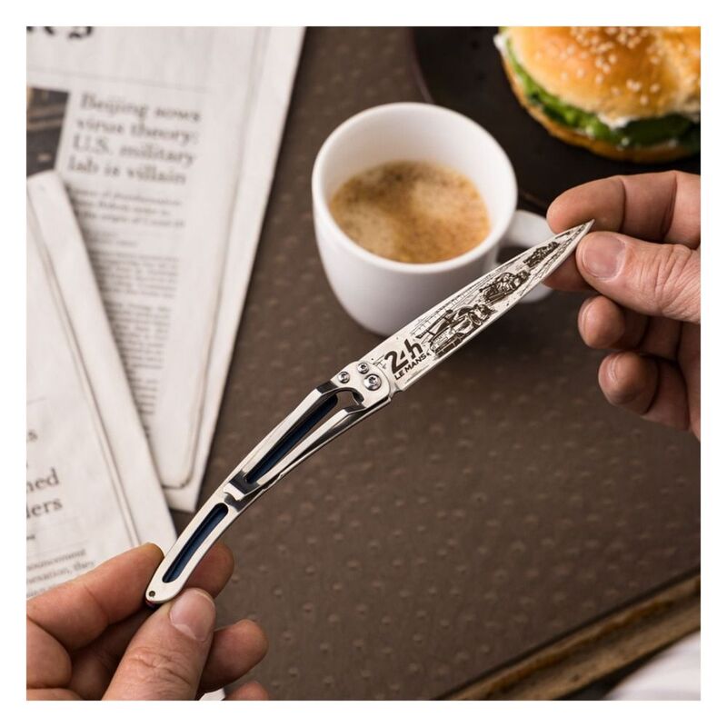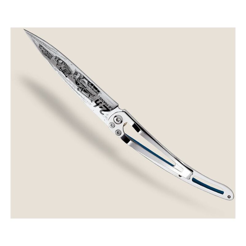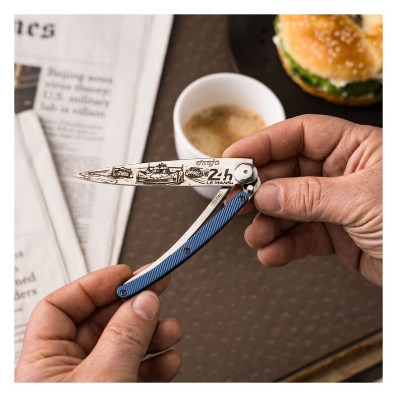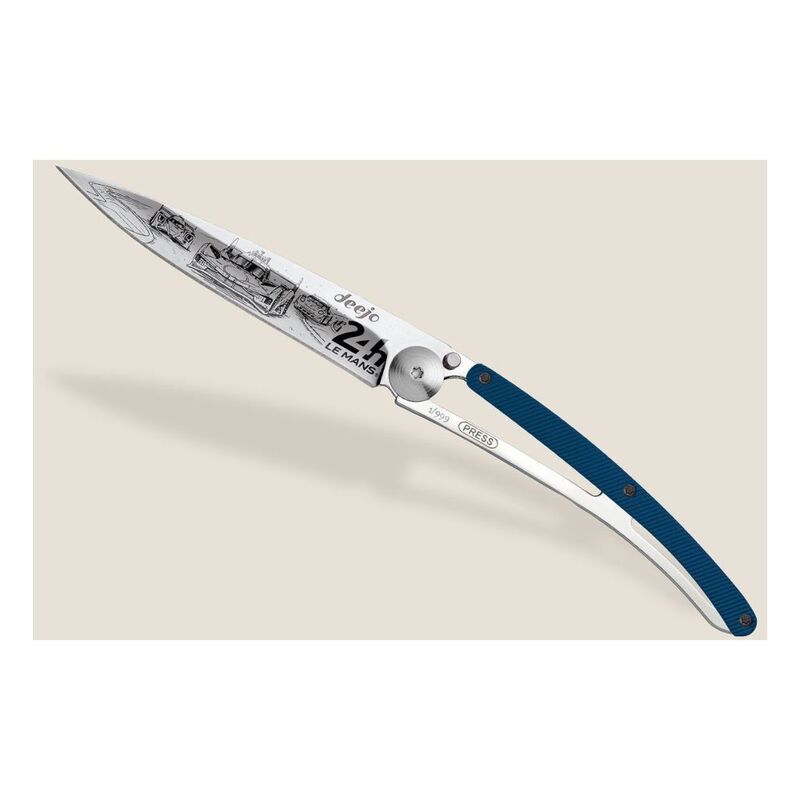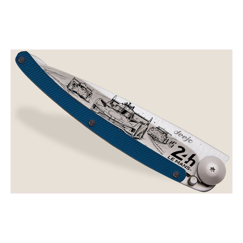 Deejo 37G Blue Aluminum Pocket Knife - 24H Le Mans Trio Llimited And Numbered - Blue