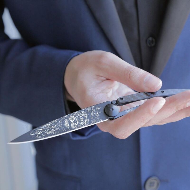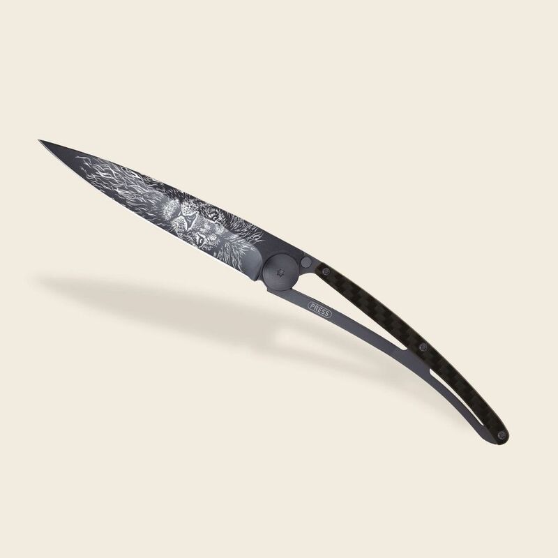 Deejo 37G Pocket Knife - Carbon Fiber/Lion (Black)