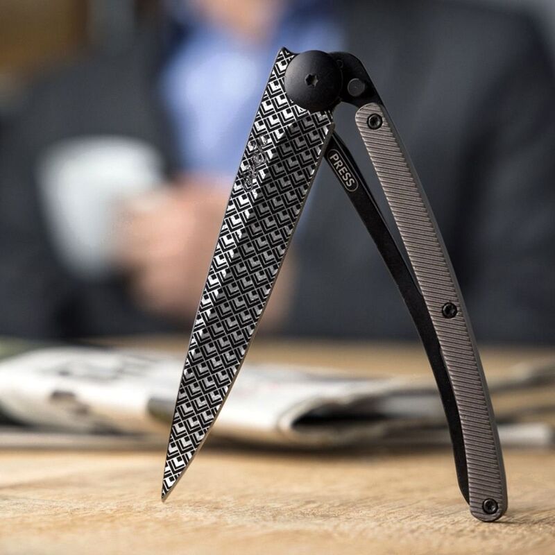 Deejo 37G Pocket Knife - Dark (Grey) Aluminium/Illusions (Black)