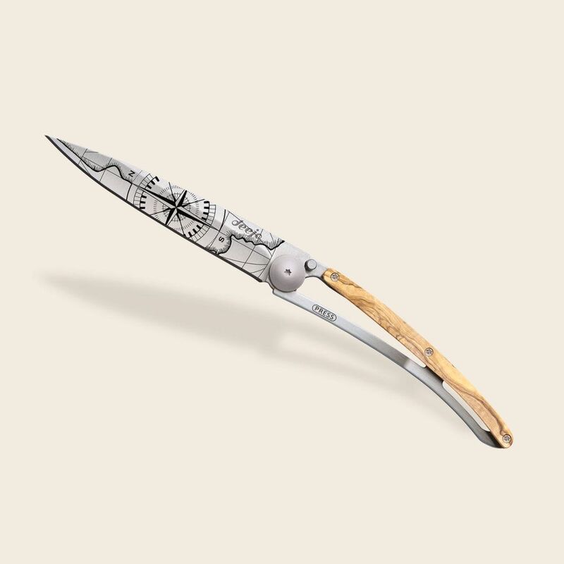Deejo 37G Pocket Knife - Olive Wood/Terra Incognita (Grey)