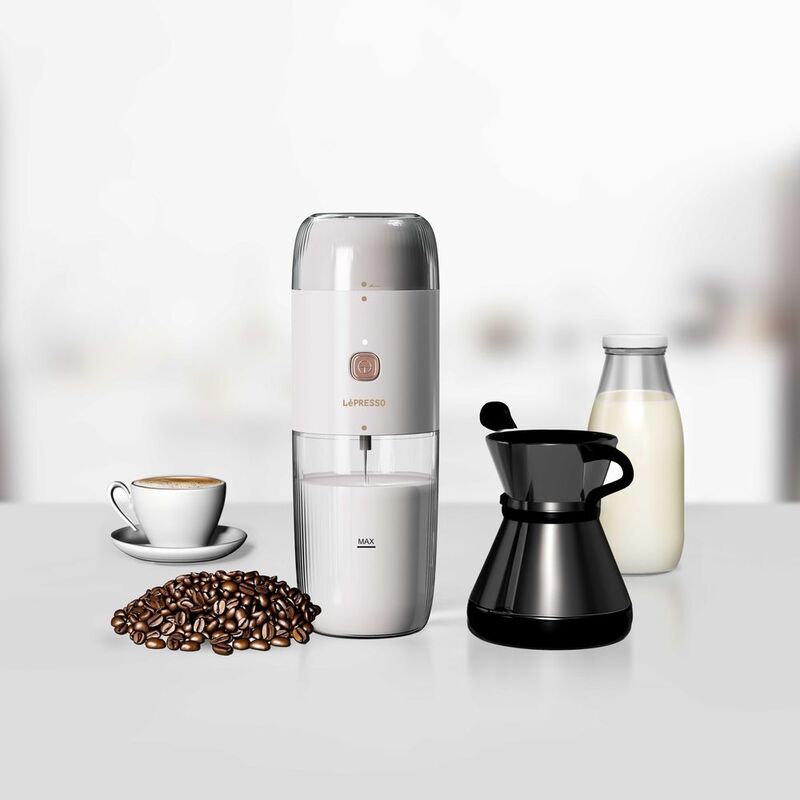 LePresso 2-in-1 Coffee Grinder & Milk Frothing - White