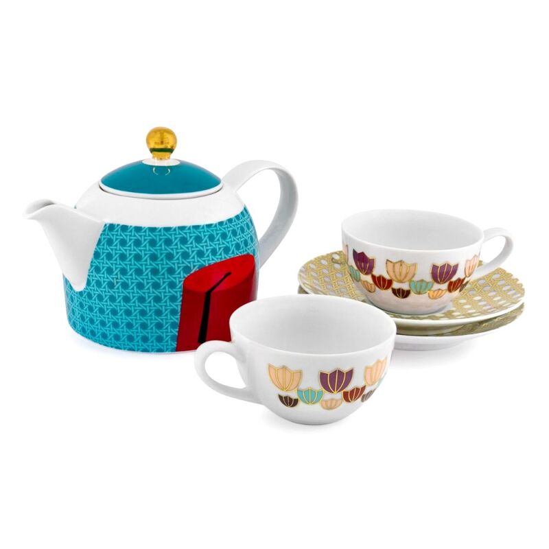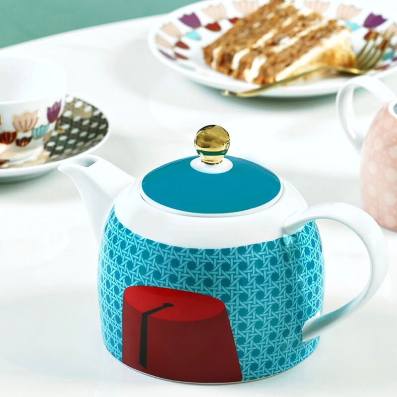 Bring a touch of quirky nostalgia to brunches and afternoon pick-me-ups with this colorful porcelain teapot. Created in collaboration with event planner Maya Toubia, it’s adorned with a colorful pattern inspired by the traditional Lebanese art of chair caning and finished with the iconic tarboush. Sure to brighten up your morning ritual, combine it with the matching mugs or teacups for a coordinated tea party setting, or mix and match for an eclectic feel.