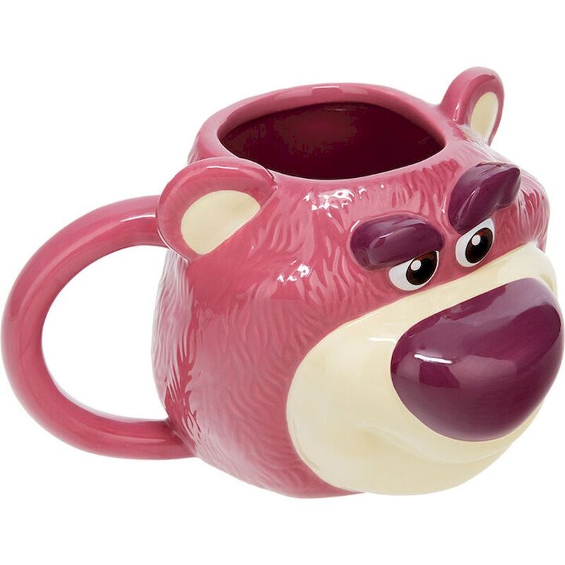 Start your day with your favourite drink in this Lotso Mug. The 680ml (22 fl oz) pink ceramic mug is shaped like Toy Story's Lots-o'-Huggin' Bear, the strawberry scented teddy bear ruler of Sunnyside Daycare. Its oversized capacity means you can enjoy an extra large serving of tea, coffee, or hot chocolate. Not suitable for dishwasher or microwave use. The Lotso Mug will make a delightful addition to your kitchen cupboard. It's perfect for fan's of Disney Pixar's Toy Story.