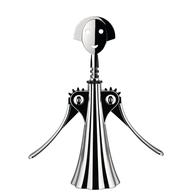The Anna G. designer corkscrew by Alessandro Mendini is an ironic tribute to a real woman whose smiling face has become a cult item over the years. Since 1994, it is one of the most recognized products within the Alessi Encyclopedia.