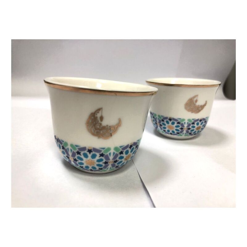 Blue ceramic set that consist of tea cup with distinctive design printed with logo of the state on the corner of cup. It comes with six cups with the Ramadan print design.