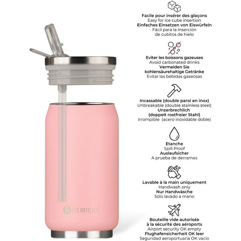 The isothermal can is an insulated flask designed as a can. Its double-wall stainless-steel technology maintain drinks hot for 5h and cold for 10h, with no impact on the drink's flavor.