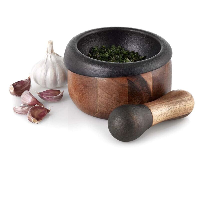 Designed in Germany, AdHoc mortar and pestle lets you easily crush and grind all types of herbs and spices. It features a stylish design and cast iron pestling surface that makes it beyond durable.