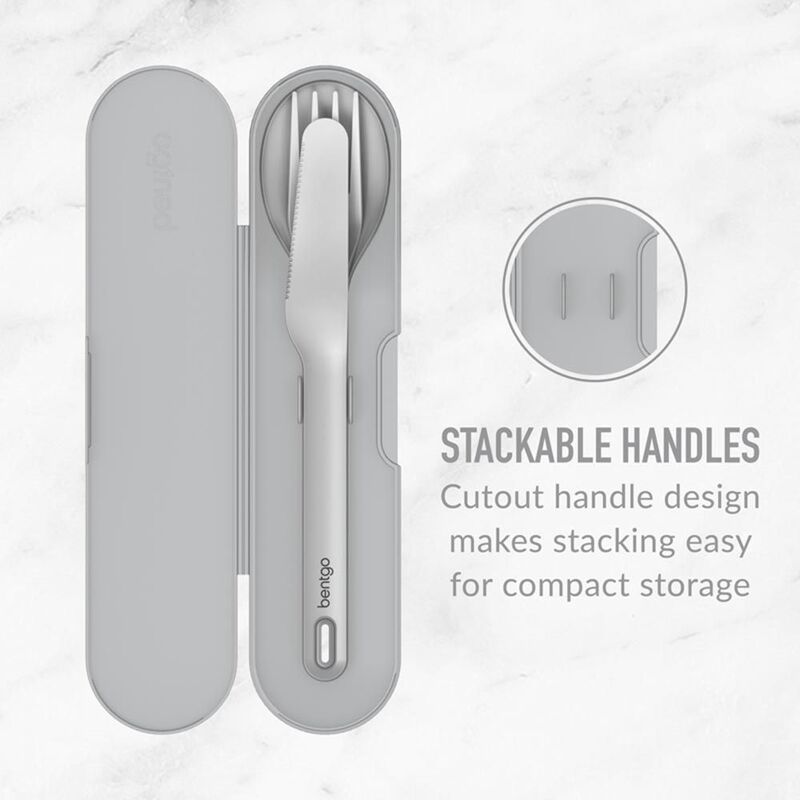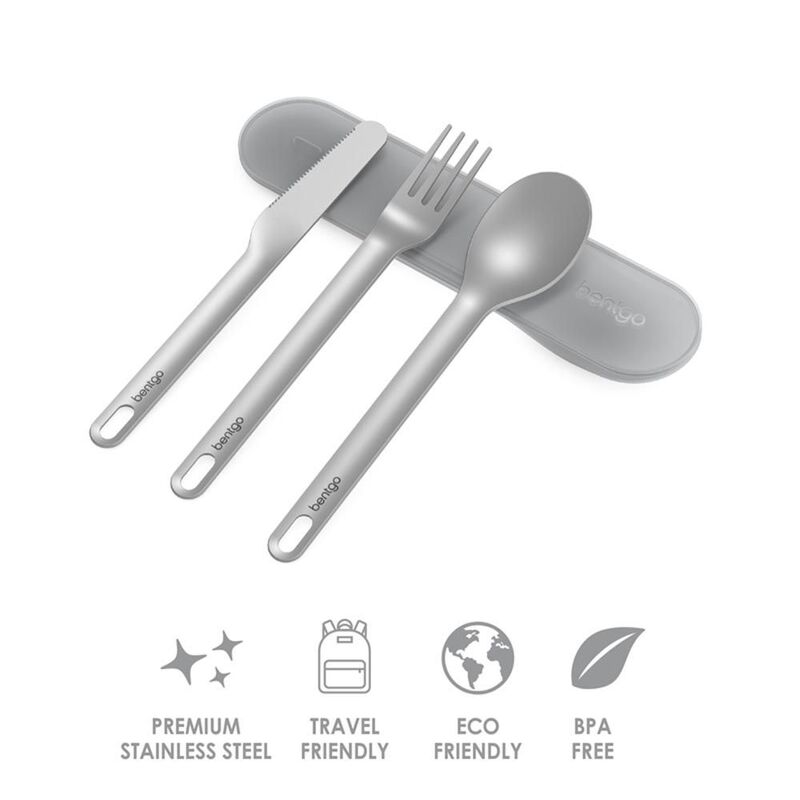Bentgo Stainless Travel Utensil Set makes eating any meal easy, safe, and convenient. The minimalist-designed set comes with an adult-sized fork, spoon, knife, and carrying case. Reusable and dishwasher-safe, these high-quality utensils are made with premium-grade stainless steel and are BPA-free. The sleek and colorful case perfectly nests and prevents the cutlery from rattling while in transit and ensures your bag will stay clean after use. Ditch flimsy and unsustainable single-use plastics for an eco-friendly alternative when eating at the office, on vacation, outdoors, or wherever the pursuit of good food takes you.