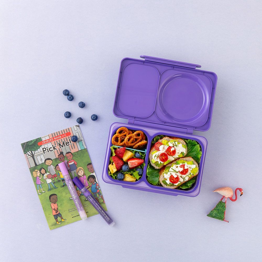 - Features an ice pack to chill your fruit and veggies, name tag, and compartment divider.