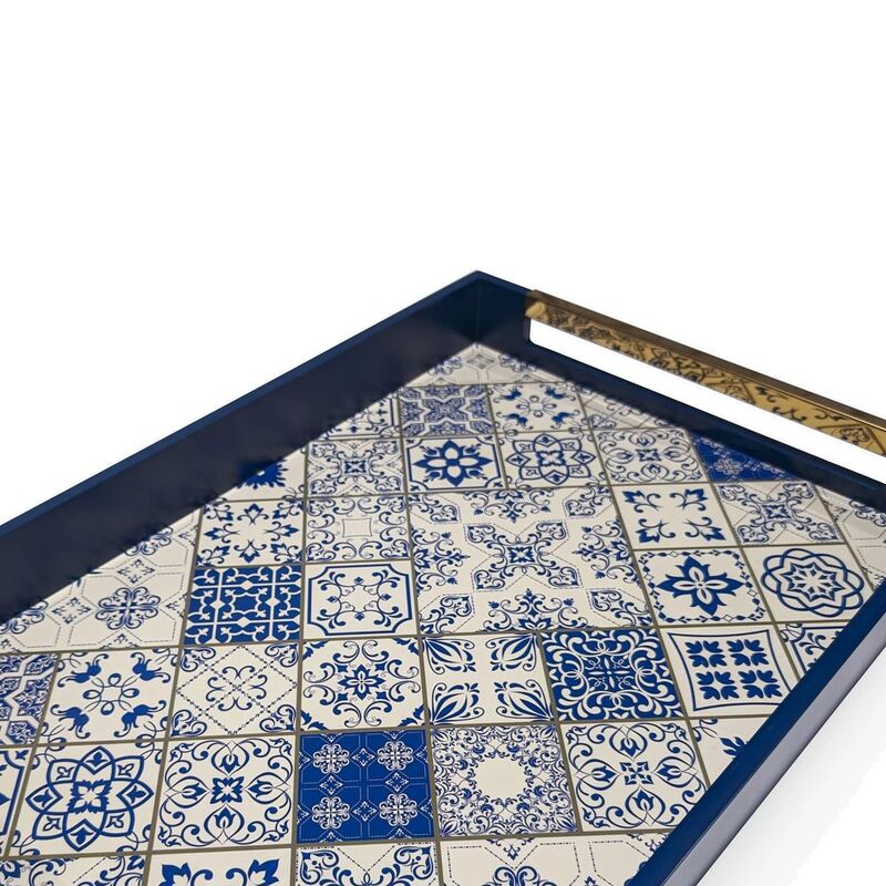 Roomours Blue Gold Tray (48 x 33.5 x 5 cm)