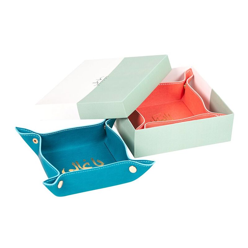 A thoughtful favor or sweet gift, this catchall tray is perfect for holding trinkets, change or jewelry. Expertly crafted from vegan leather, it's decorated with the word "Mashallah", meaning "God Willing", in gold calligraphy. The perfect addition to your desk or bedside table, it keeps your daily essentials neatly in place.