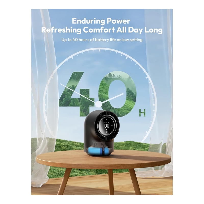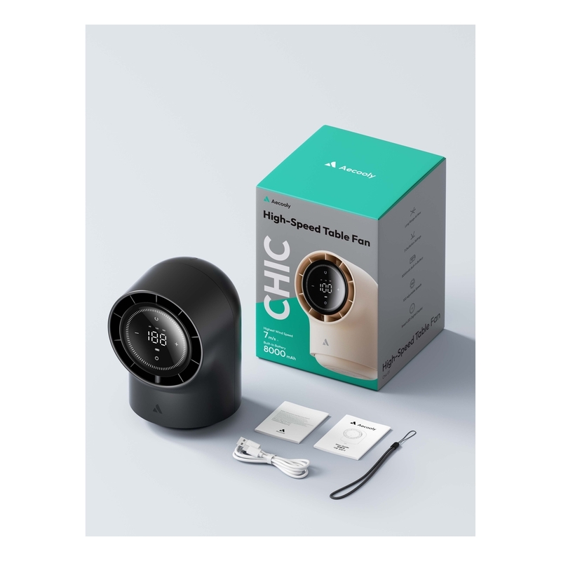 • Aecooly Desktop Office Fan equipped with a high-capacity 8000mAh battery, this fan ensures long-lasting cooling, making it the ideal companion for home, office, travel, and outdoor adventures.