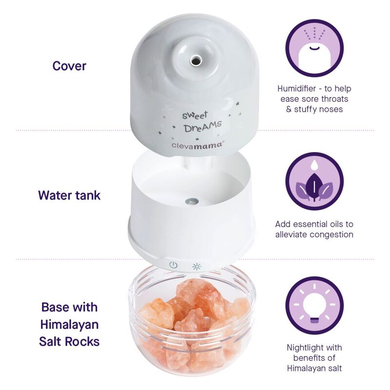 Clevamama clearer salt lamp - humidifier, air purifier, aromatherapy diffuser
