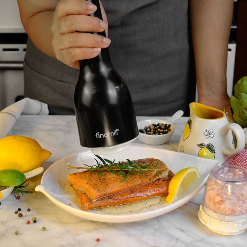 FinaMill Battery Operated Spice Grinder with Two Pods- Midnight Black