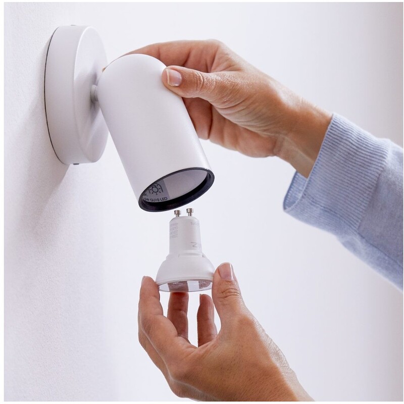 Add diffused, colourful smart light to the standard recessed fixtures or spotlights in your home with the WiZ full-colour GU10 bulb. Use with the WiZ app or your voice to dim and brighten or use preset light modes on Wi-Fi setups.